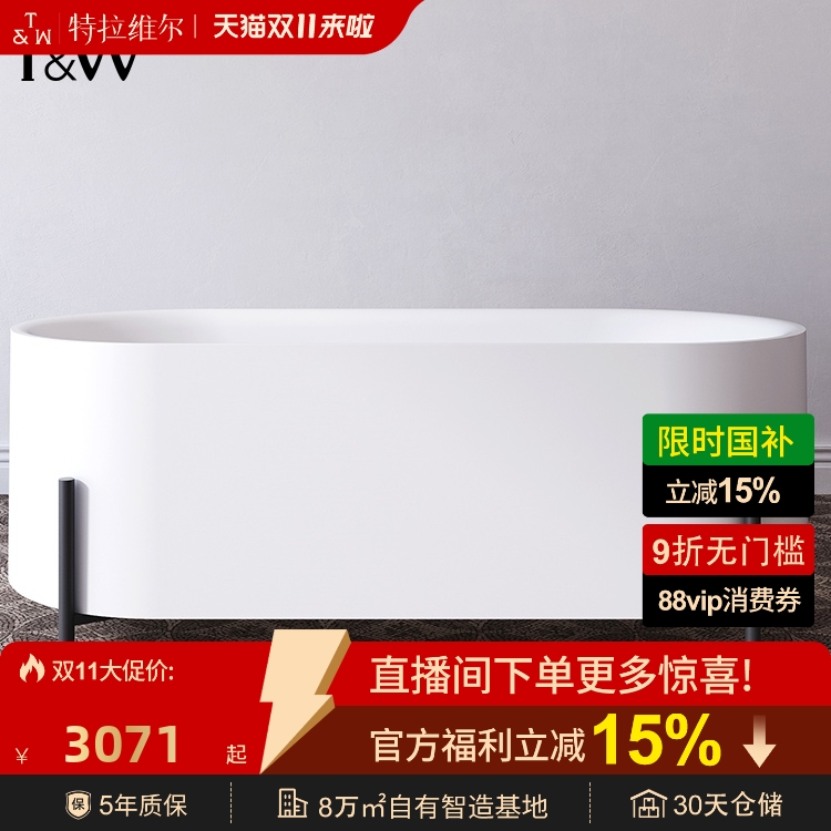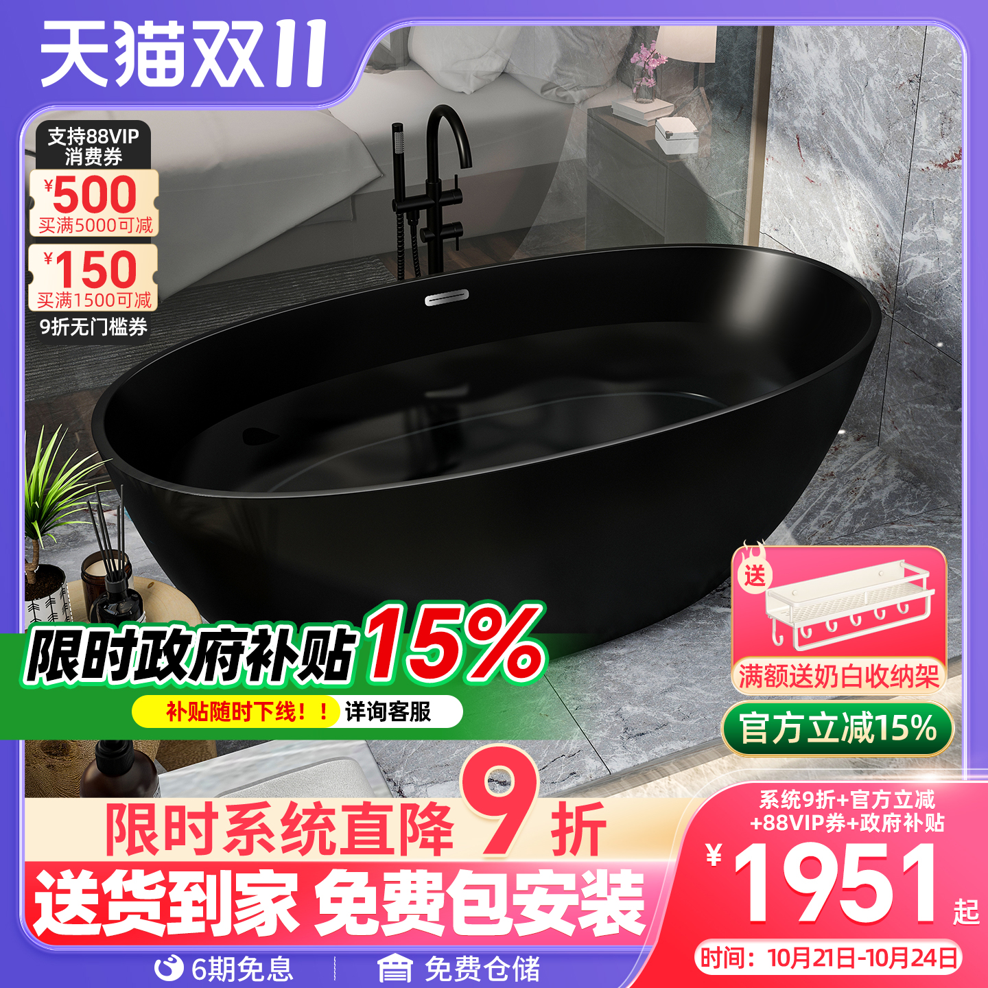 特拉维尔浴缸家用亚克力小户型独立日式椭圆泡澡网红酒店民宿浴盆