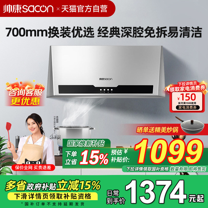 帅康M8303小型中式吸油烟机大吸力厨房抽油烟机700mm以旧换新补贴