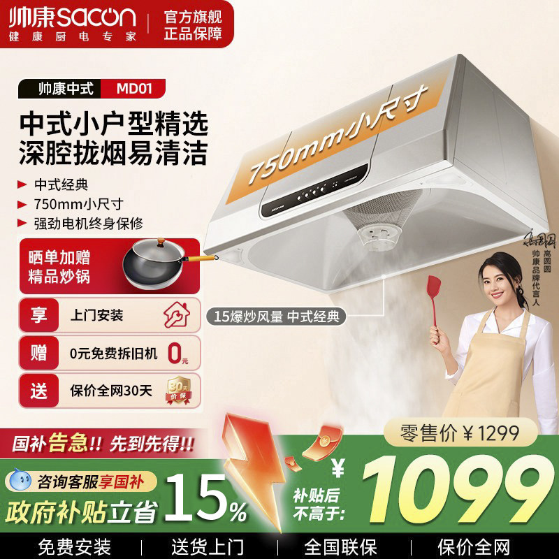 帅康MD01中式抽油烟机750mm小尺寸老式小型家用厨房以旧换新补贴