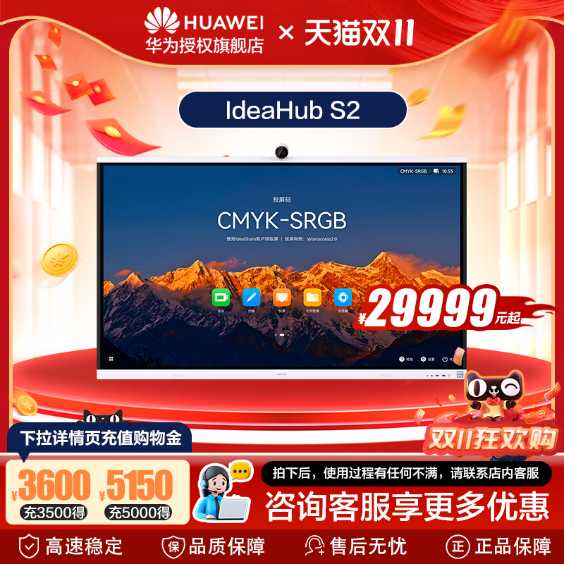华为 IdeaHub S2 65/75/86英寸鸿蒙双系统智能视频会议协作平板电子白板4k高清无线投屏教学一体机