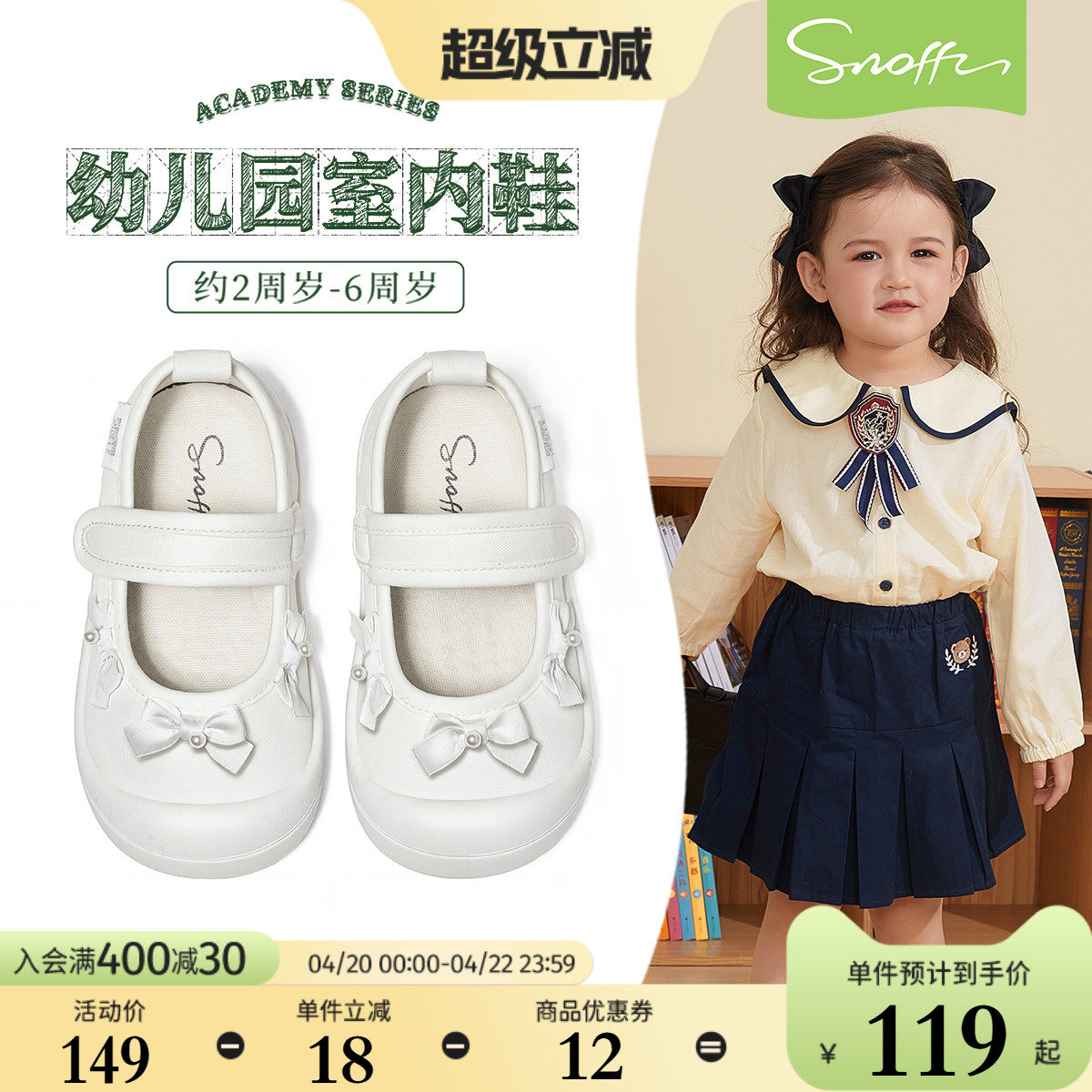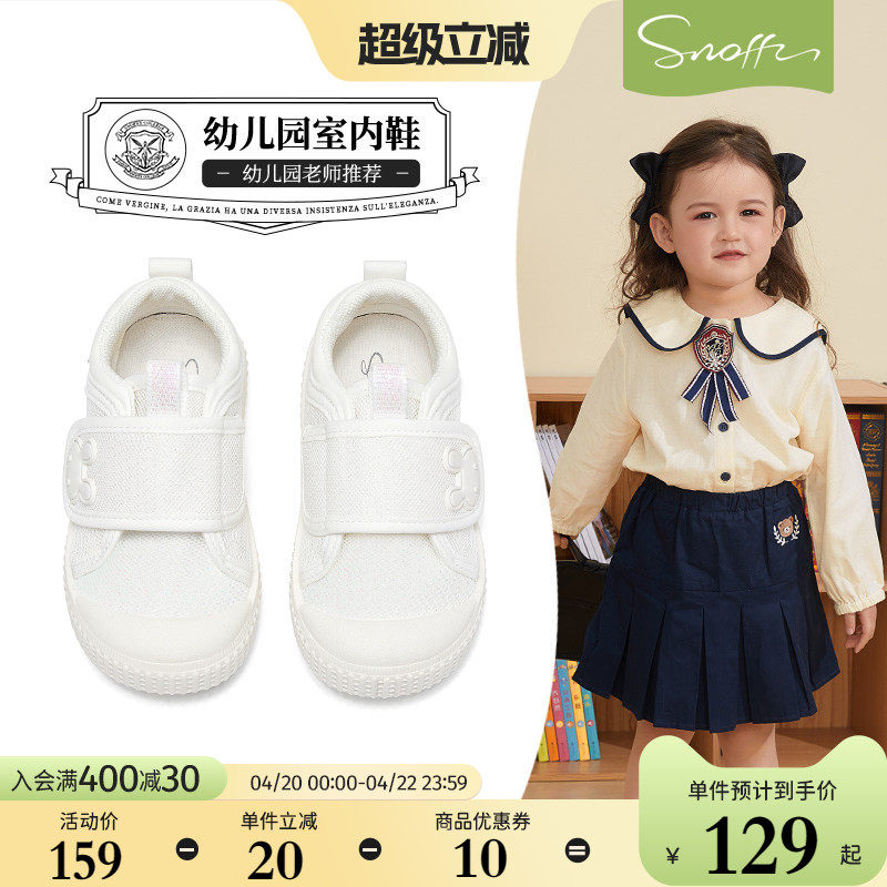 斯纳菲女童学步鞋2026春季新款轻便透气软底幼儿园室内白色帆布鞋