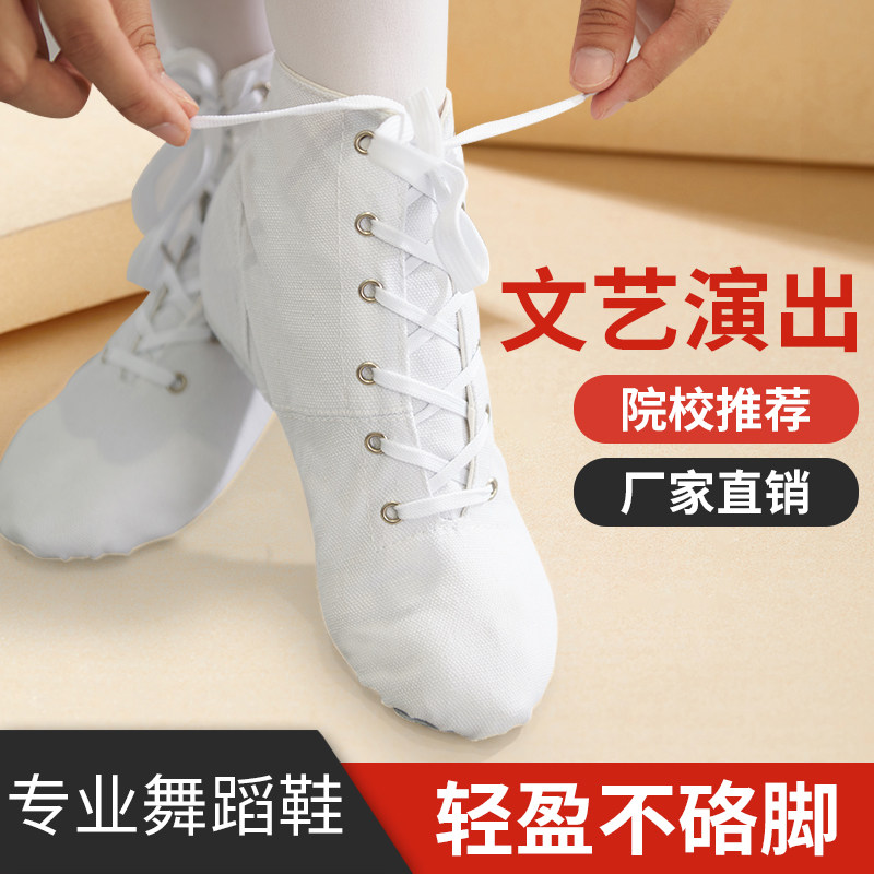 高帮爵士舞蹈鞋女软底防滑成人儿童帆布白色演出芭蕾跳舞鞋练功鞋