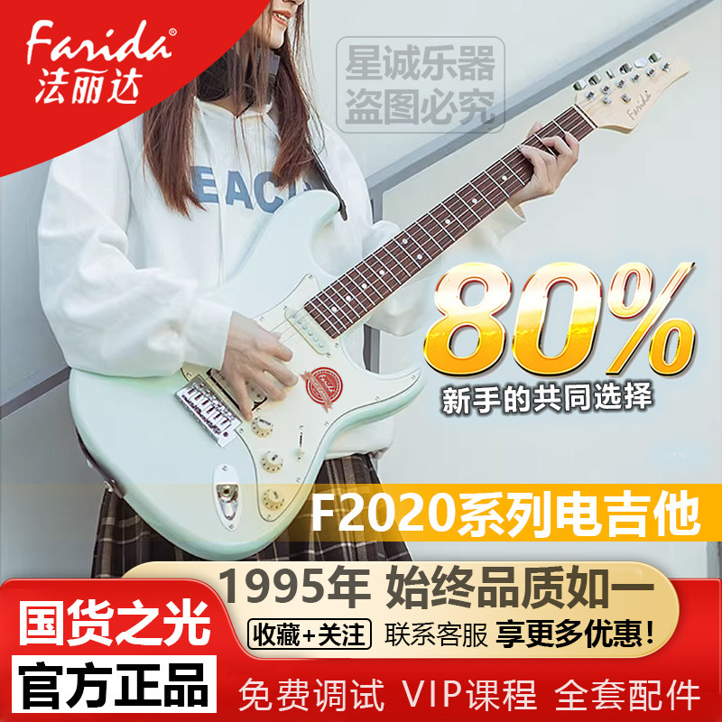 Farida法丽达电吉他初学者女生F2020官方旗舰店正品入门单摇F5020