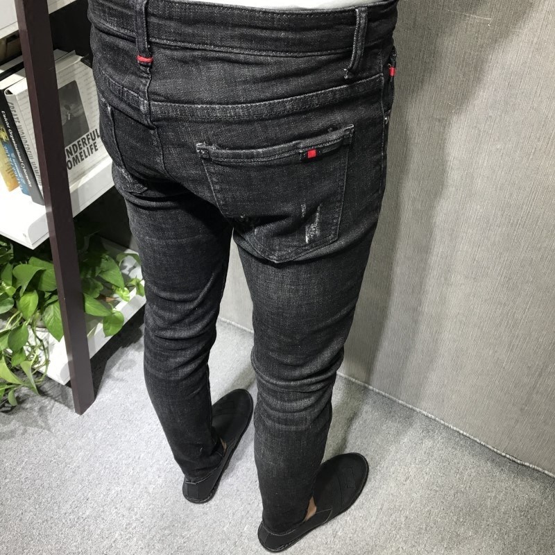 潮男秋冬新韩版修身复古做旧黑猫须小脚牛仔裤社会小伙快手网红人