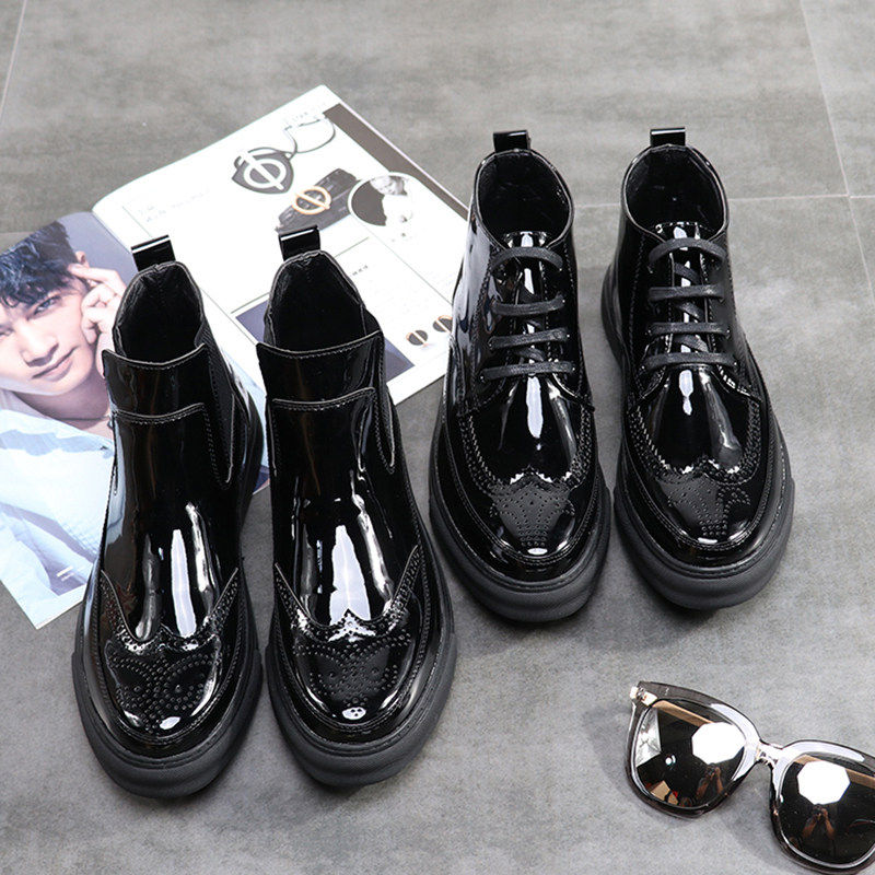 男士英伦布洛克韩版秋冬季新款加绒棉靴雕花潮鞋红人快手同款潮鞋