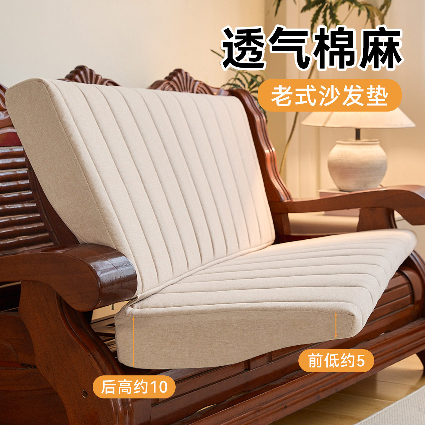纯色亚麻防水实木沙发坐垫防滑四季红木椅加硬海绵沙发垫子可拆洗