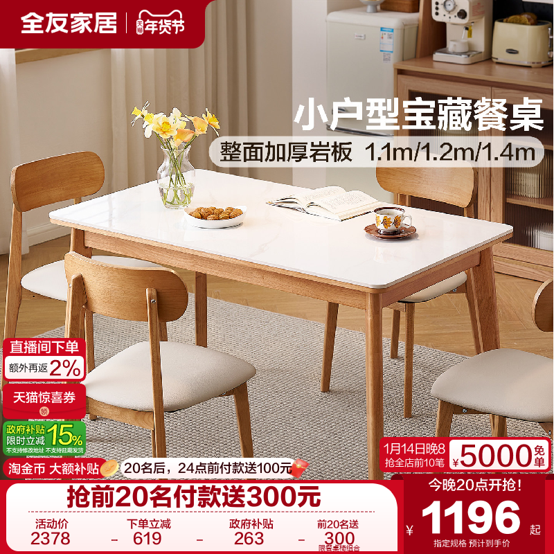 全友家居北欧风2025新款客厅岩板餐桌家用小户型长方形实木脚饭桌