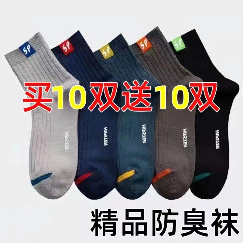 袜子男春夏中筒袜SP字母百搭男袜防臭吸汗运动袜男士棉袜诸暨袜子