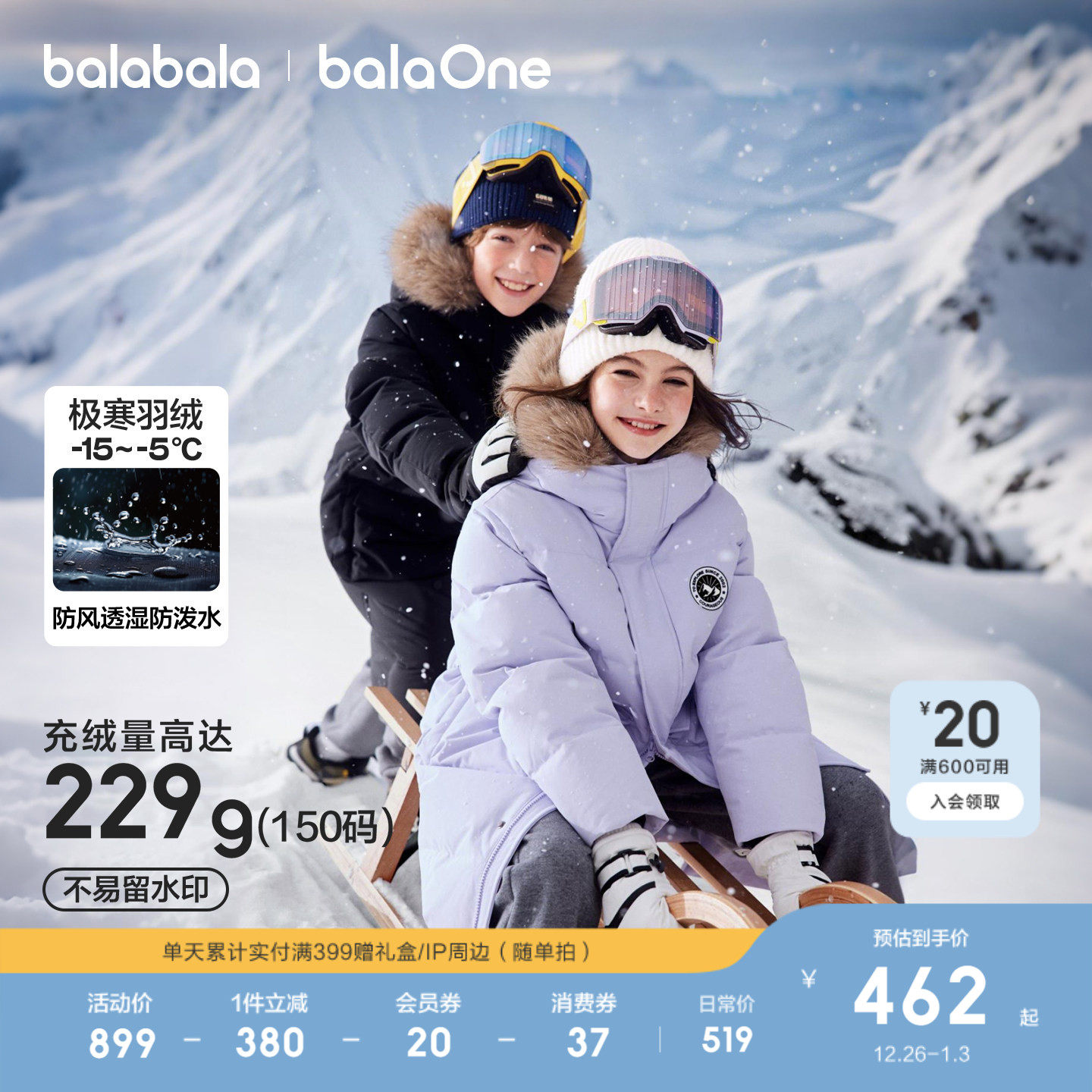 巴拉巴拉儿童羽绒服女童鹅绒加厚冬中长款男童上衣2025年新款外套