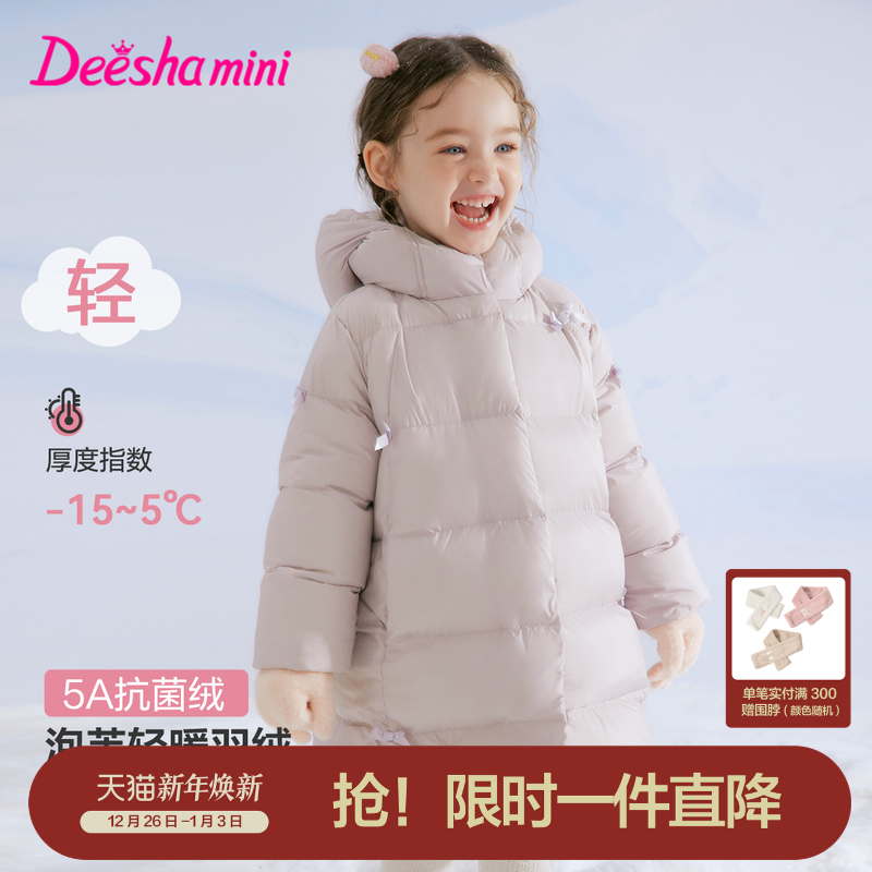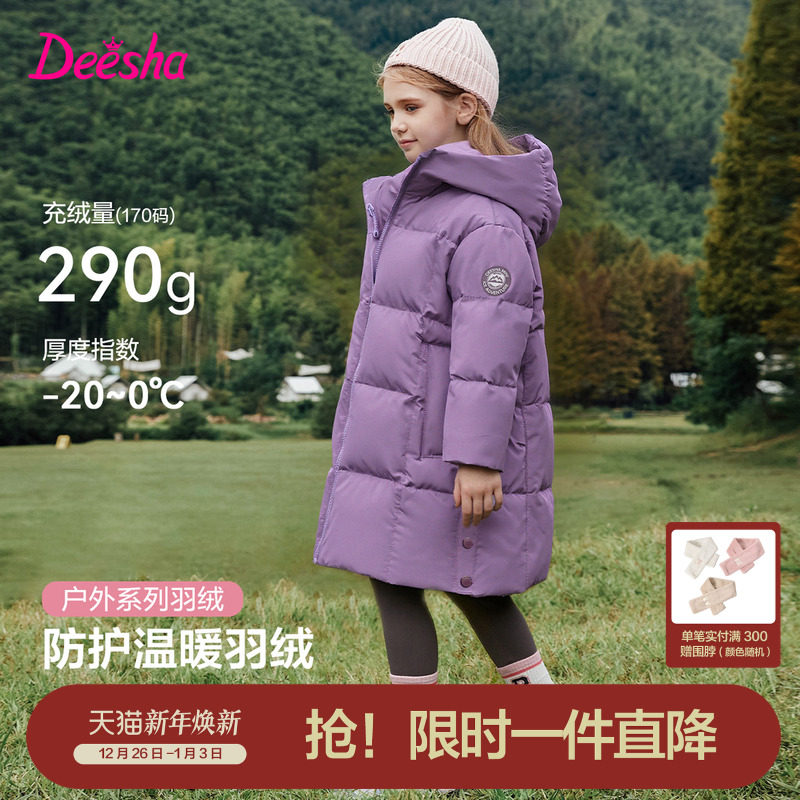 笛莎官方旗舰童装女童长款羽绒服秋冬季新款宝宝儿童加厚保暖外套