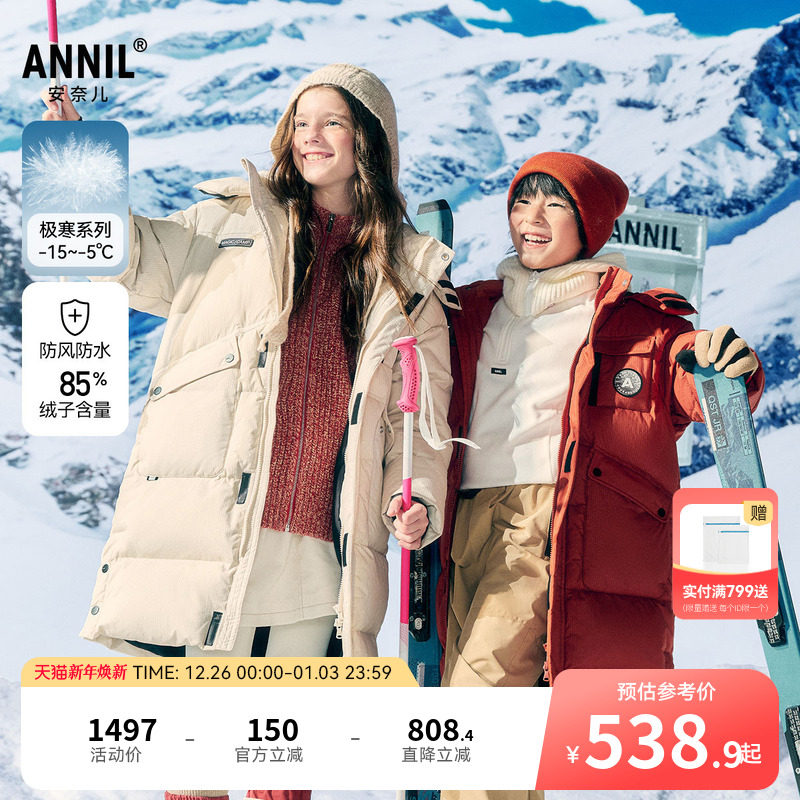 安奈儿童装男童女童长款羽绒服2025冬新款户外保暖防风加厚宽松