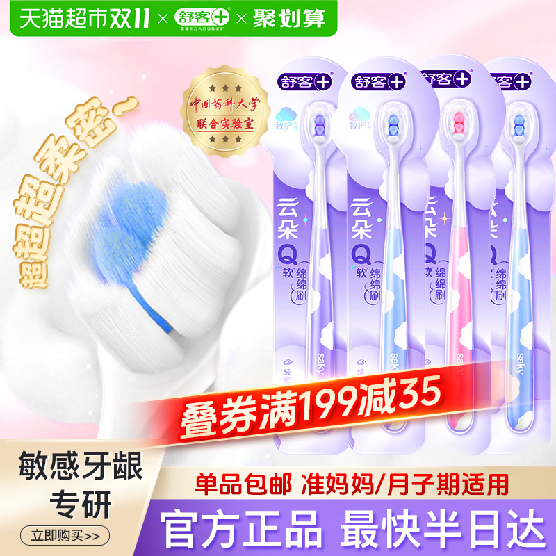 包邮舒客牙刷云朵小头软毛护龈情侣牙刷男女士成人超软装家庭4支