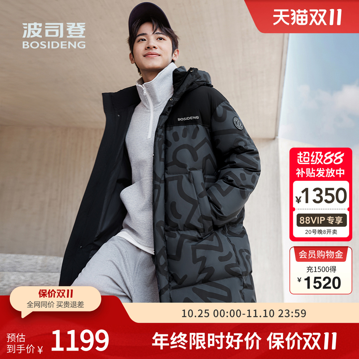波司登奥莱冬季中长款男女同款撞色潮流时尚运动保暖连帽厚羽绒服