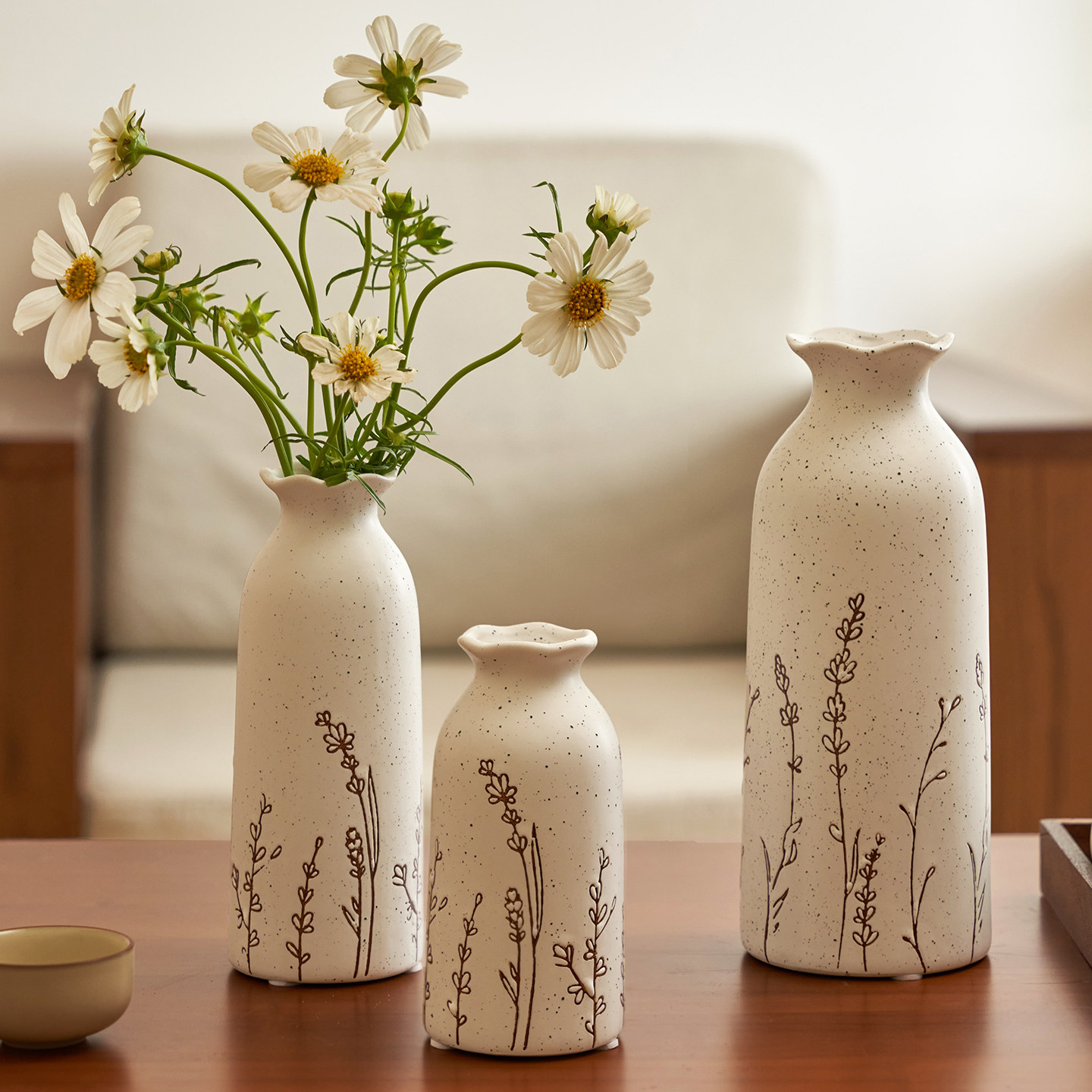 可装水陶瓷花瓶三件套白色北欧创意装饰干花鲜花餐桌客厅插花摆件