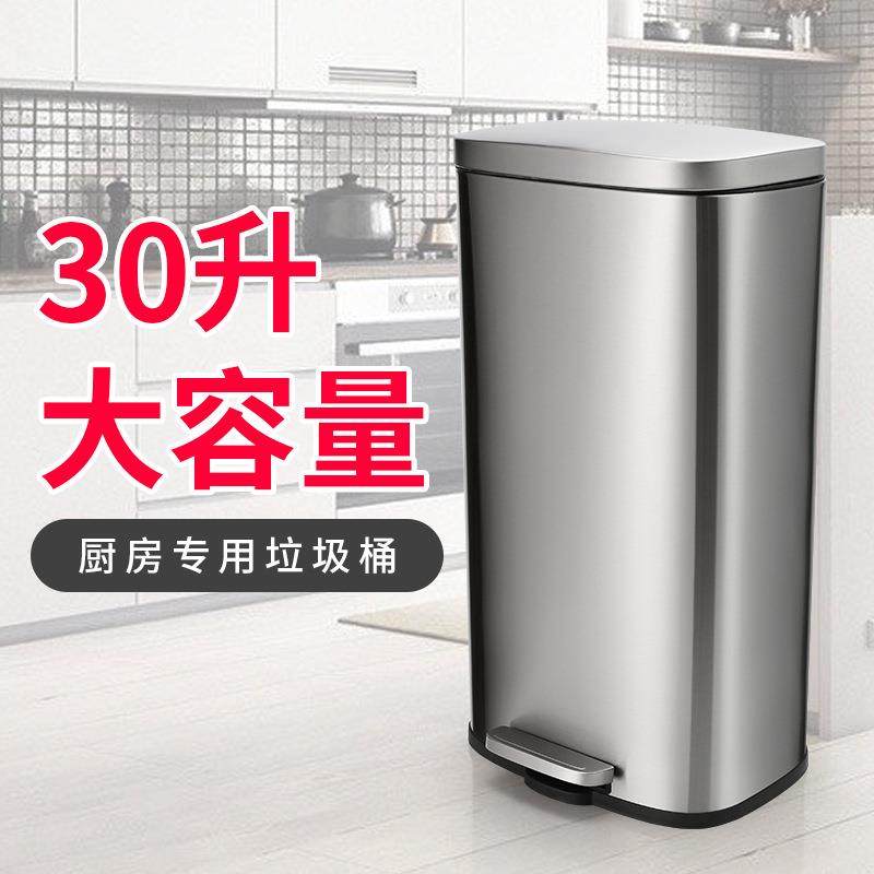 脚踏式不锈钢大码垃圾桶30升特大号工厂室内办公室酒店厨房翻盖L