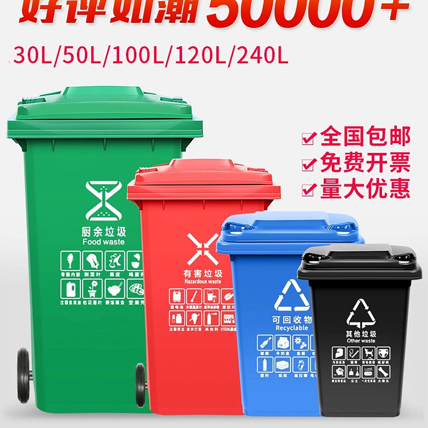 环卫塑料户外室外加厚大码垃圾桶大号垃圾箱工业带盖带轮分类果皮