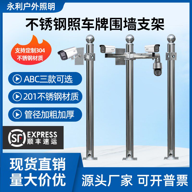 监控立杆支架 停车场小区监控杆围墙立柱室外摄像机枪机支架平面