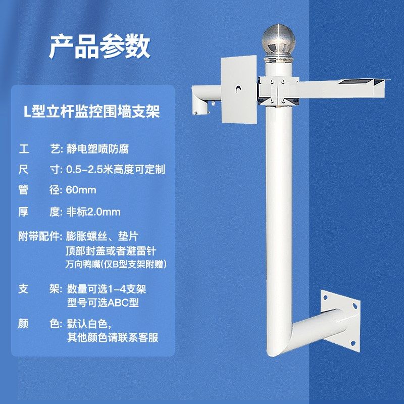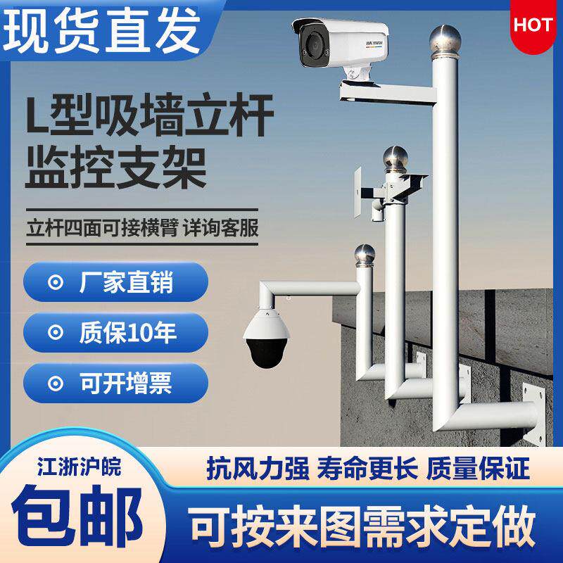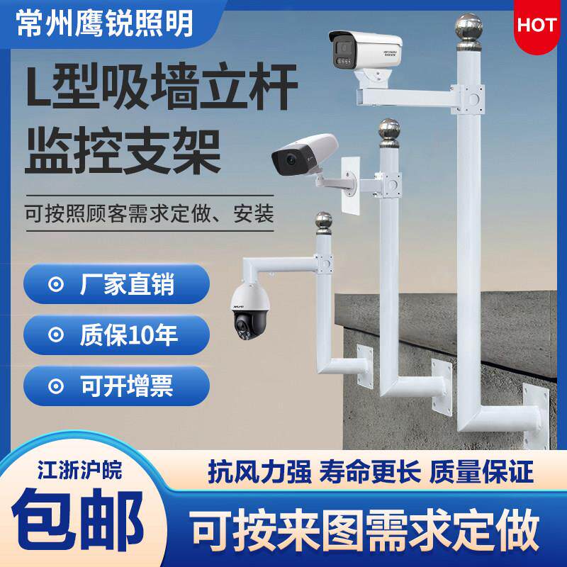 监控支架围墙加长m挑臂杆支架监控立杆支架吸墙不锈钢侧吸L型吸墙