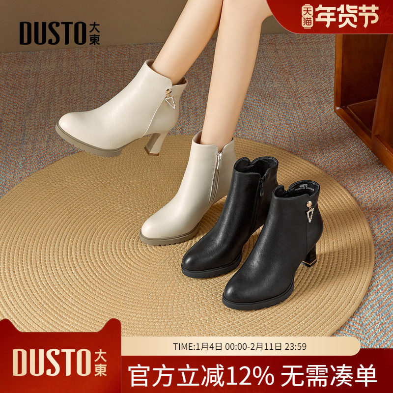 大东高跟短靴女2026新款秋冬粗跟法式小踝靴配裙子白色靴子马丁靴