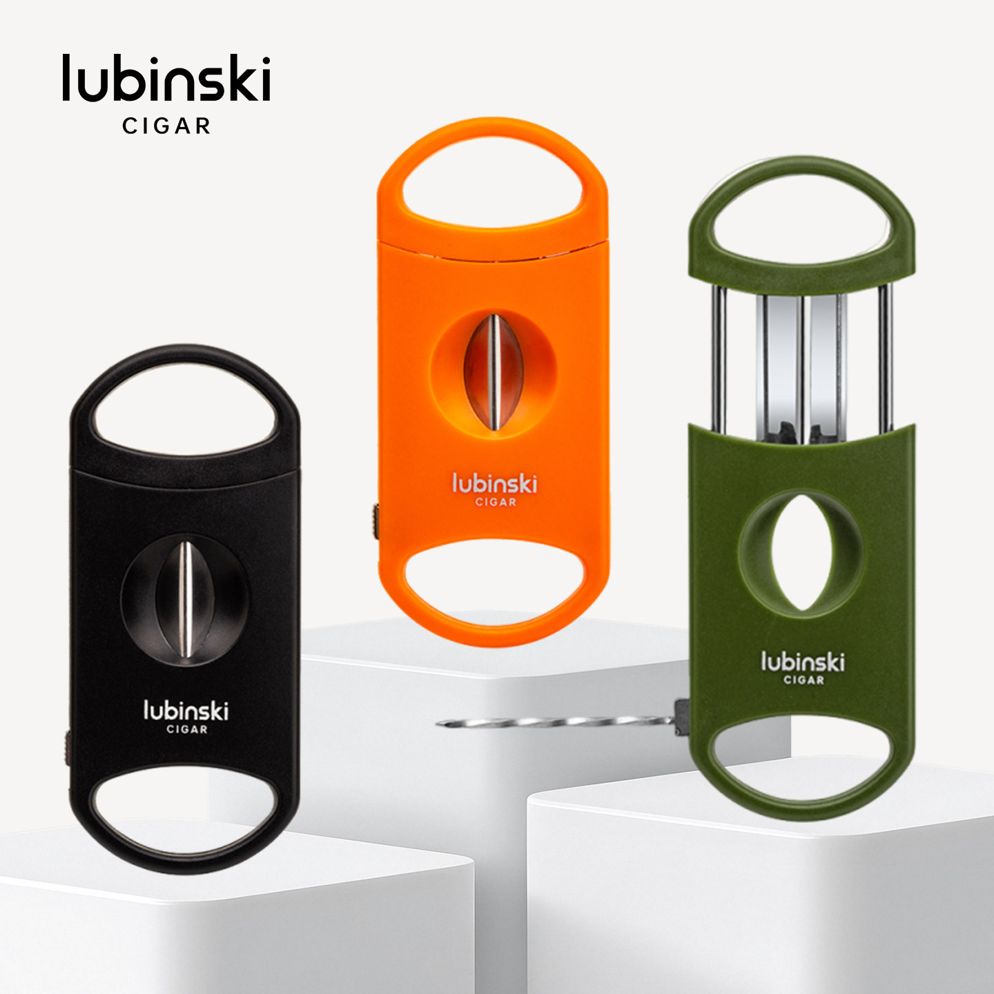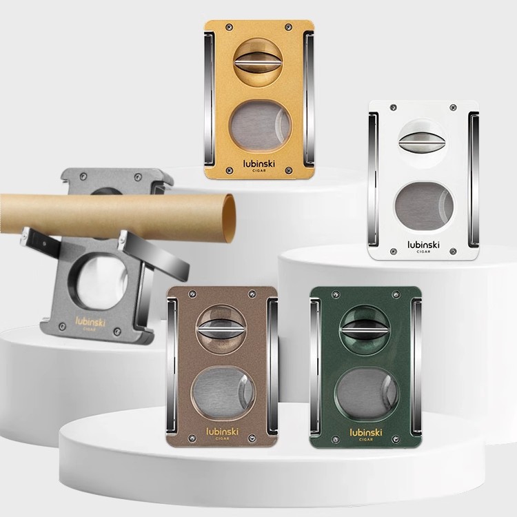 Lubinski鲁宾斯基新款多功能雪茄剪刀V切口带通针和雪茄托