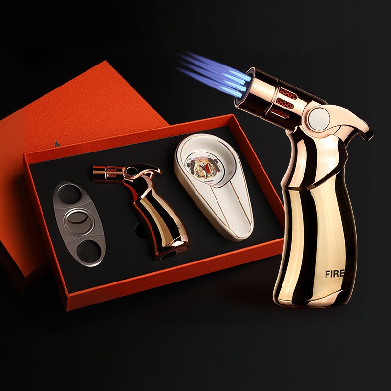 雪茄剪刀雪茄剪三件套装工具钳烟灰缸喷枪打火机打孔器专用三合一