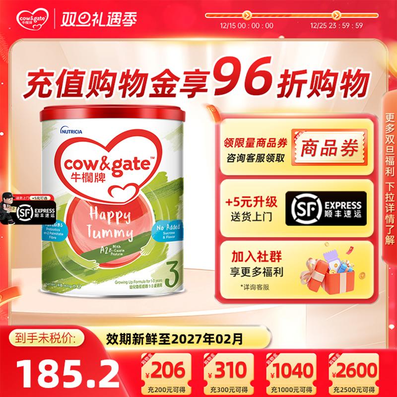 Cow&Gate牛栏3段900g港版新西兰进口A2蛋白奶粉三段婴幼儿1~3岁