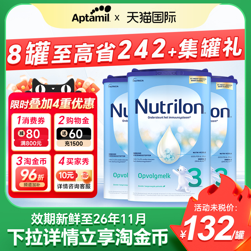 【旗舰店】荷兰牛栏3段奶粉诺优能婴儿配方牛奶粉三段Nutrilon3段