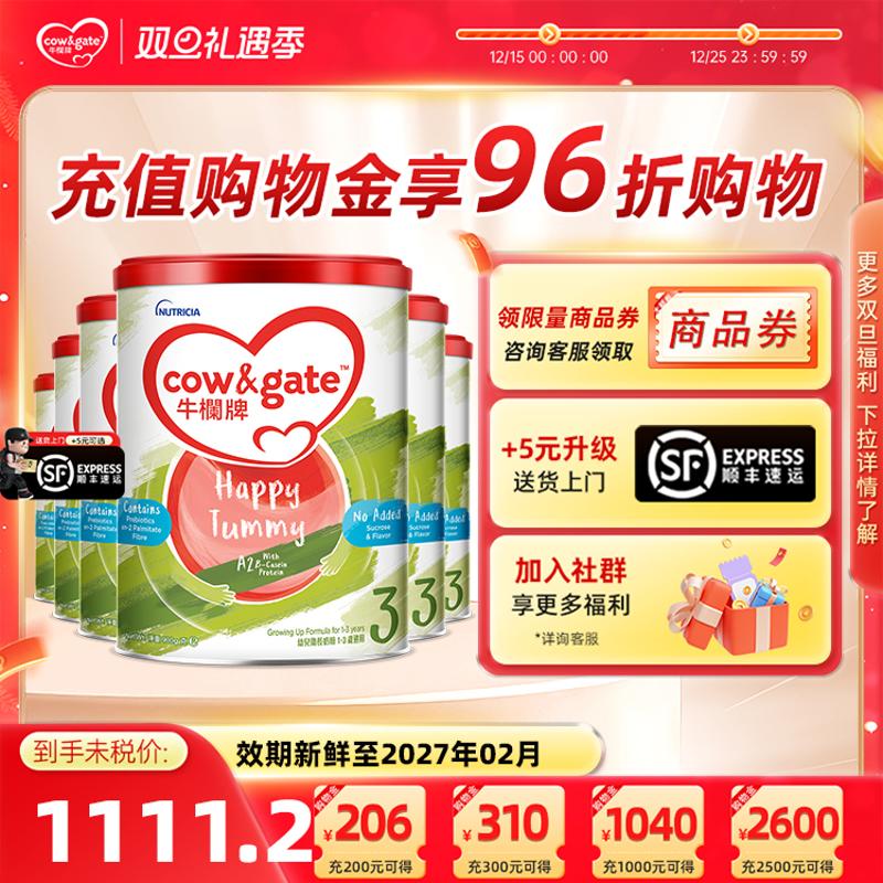 Cow&Gate牛栏牌A2三段900g港版婴幼儿宝宝牛奶粉3段1-3岁6罐装