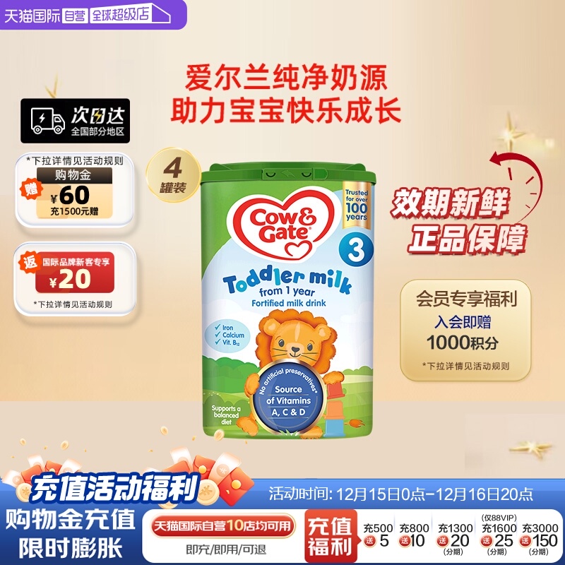 英国牛栏3段1-2岁三段Cow&Gate婴幼儿奶粉800gx4