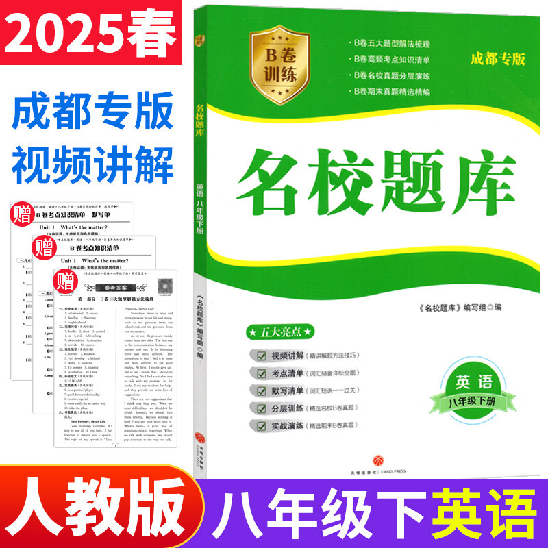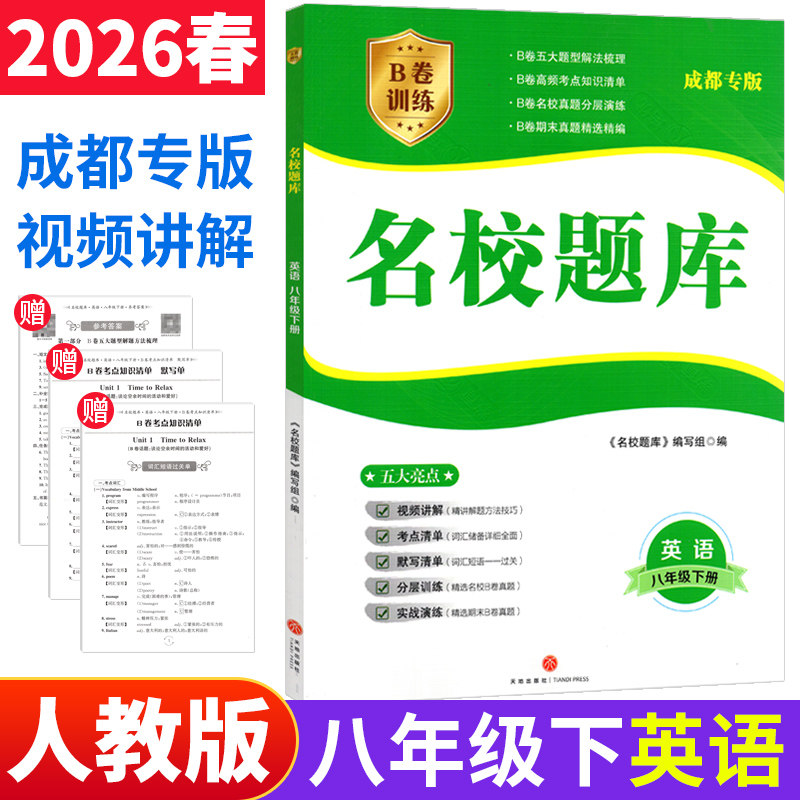 【新华正版】26春中学名校题库:八年级英语*下册 《名校题库》编写组 正版书籍 新华书店旗舰店文轩官网 天地出版社