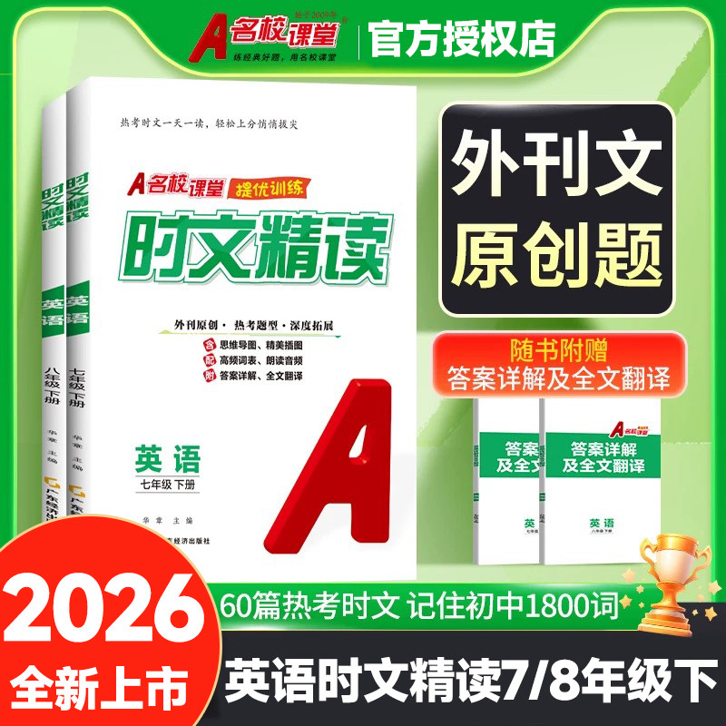 初中英语时文精读2026春名校课堂七年级八年级英语下册课外读物初中通用中学生附赠答案分层训练答案详解教材同步人教版提优训练