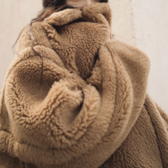 2025年冬仿懒兔毛皮草女中长款宽松加厚羊羔毛大衣连帽毛毛绒外套