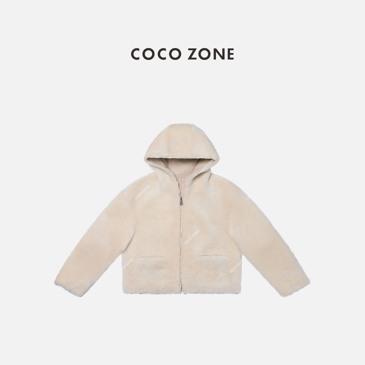 COCO ZONE 刘 一一 “暮光”100羊毛革连帽皮草外套 CD2A3024