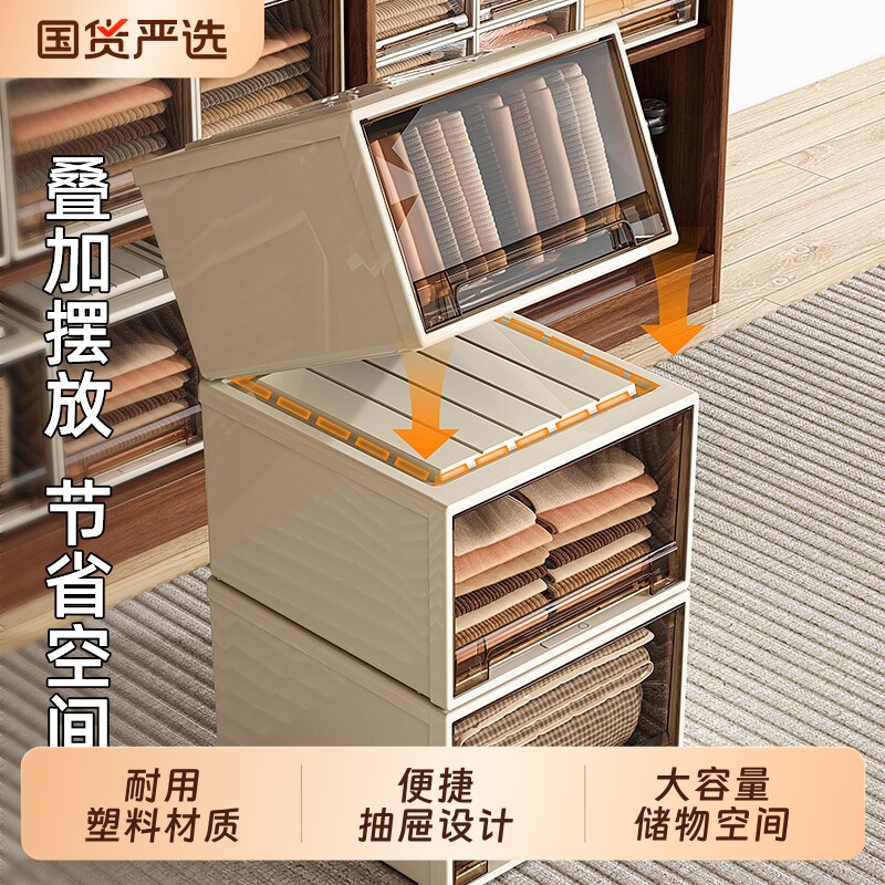 衣柜收纳箱抽屉式衣物收纳盒家用衣服储物箱塑料透明内衣收纳柜子