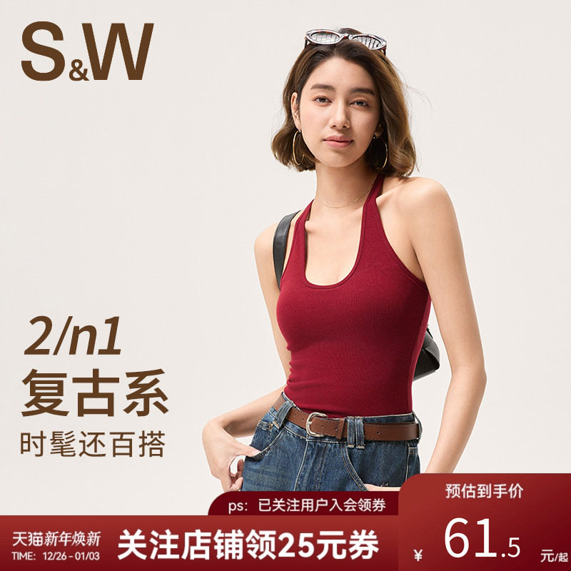 sw速惟带胸垫运动背心女挂脖吊带健身内衣红色美背瑜伽上衣女外穿