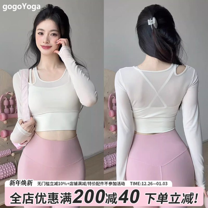 gogoyoga瑜伽上衣长袖女秋冬显瘦透气普拉提训练服跑步运动健身服