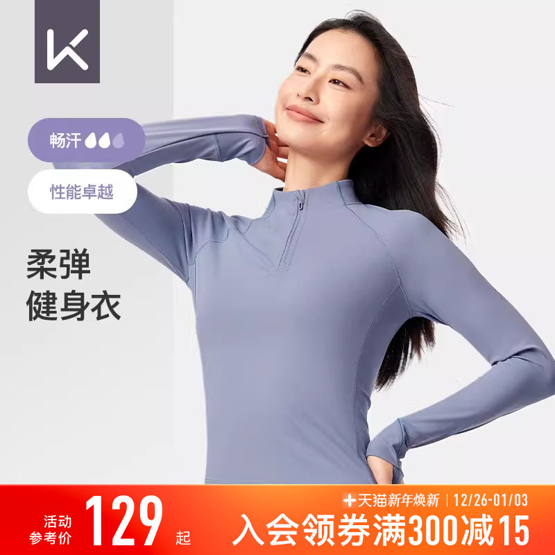 Keep长袖T恤秋冬女健身运动跑步显瘦保暖半拉链瑜健身服瑜伽上衣
