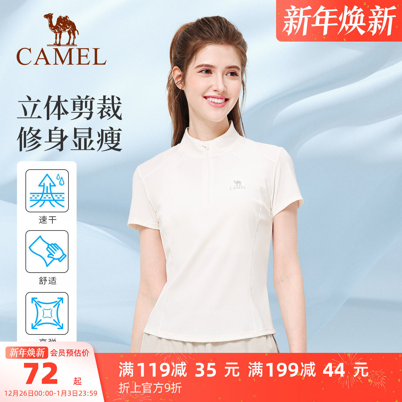 骆驼运动T恤女款夏速干透气立领短袖休闲健身服户外登山瑜伽上衣