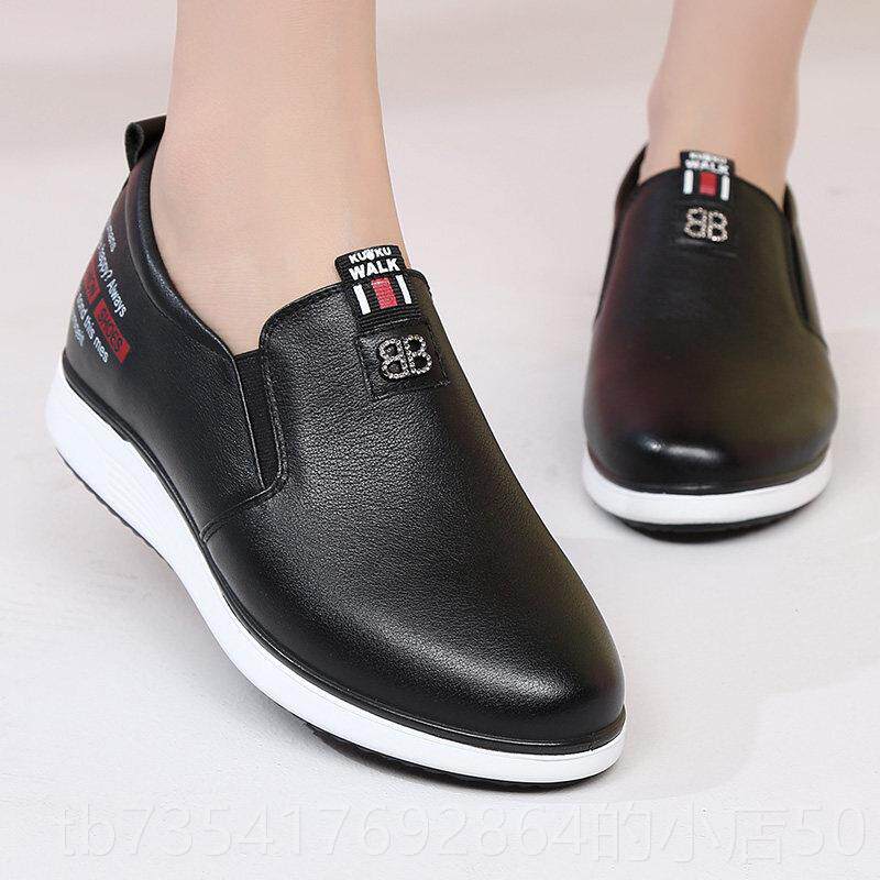 真皮休闲懒人鞋女士真皮皮鞋妈妈运动鞋中年女式旅游鞋一脚蹬女鞋
