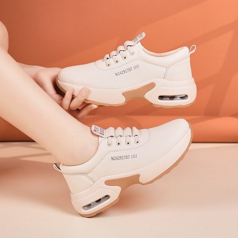 信诺真皮妈妈鞋休闲运动鞋女士小白鞋春秋2025新款中年旅游阿甘鞋