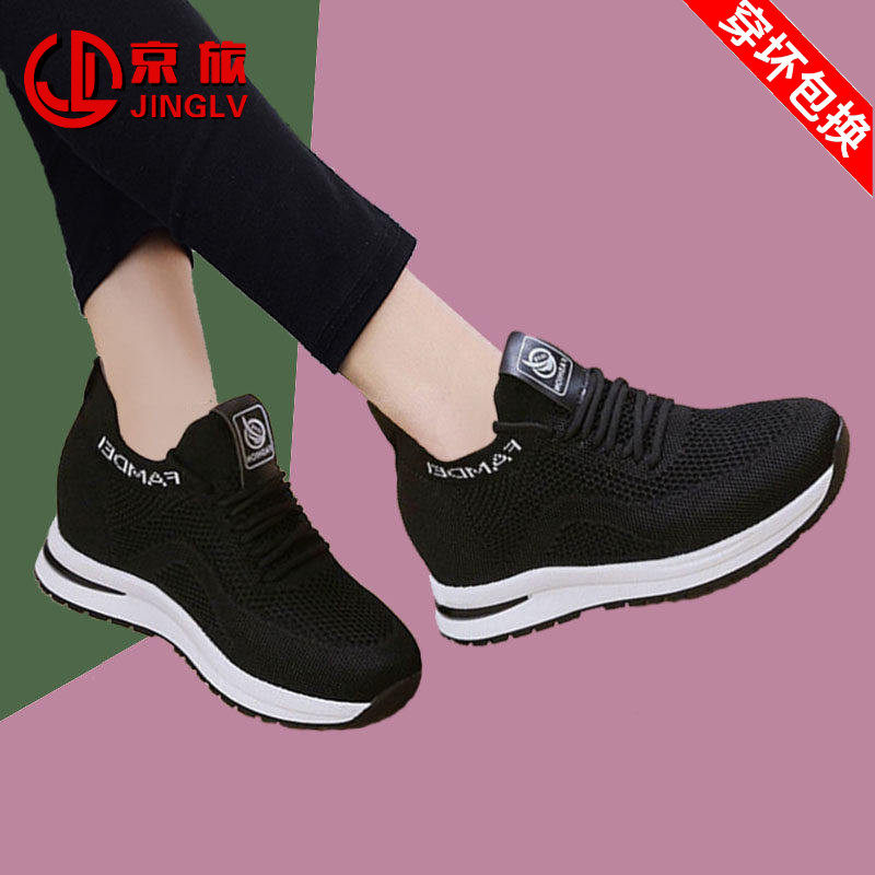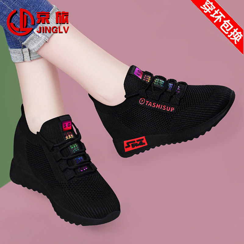 内增高女鞋老北京布鞋休闲运动鞋春秋夏黑色防滑旅游跳舞中年妈妈