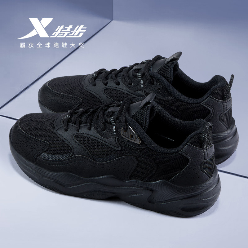 特步女鞋2026春季新款黑色运动鞋女中年妈妈鞋休闲旅游跑步鞋软底
