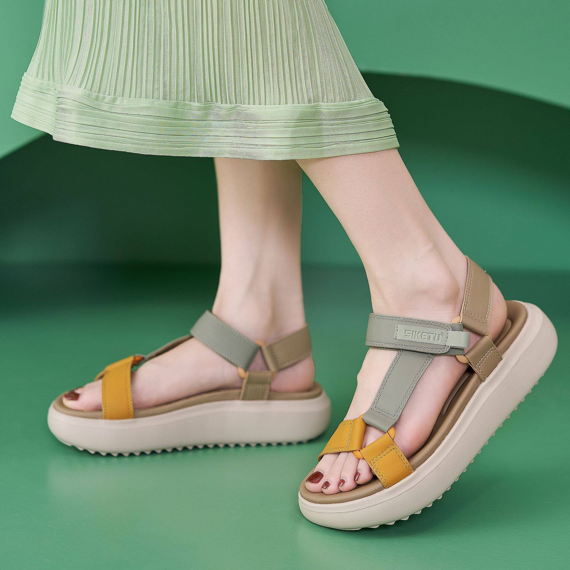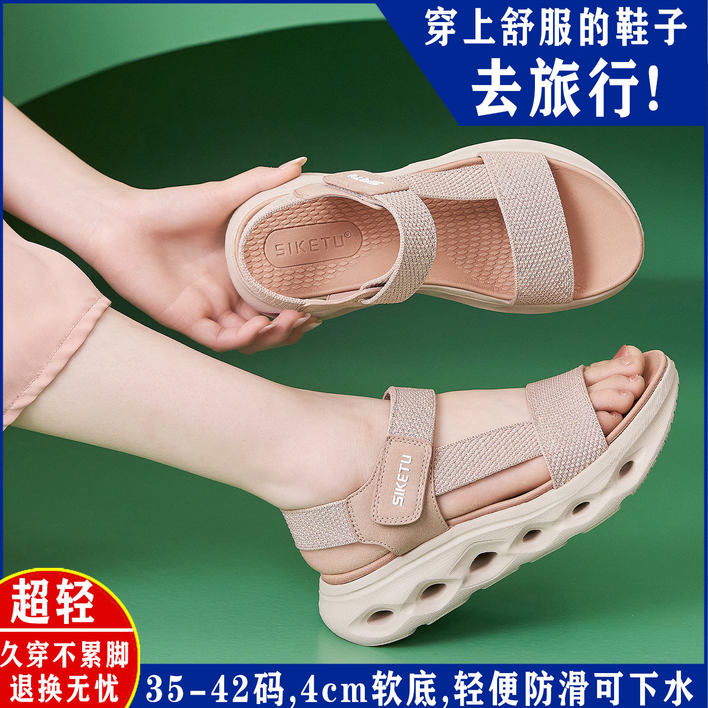 轻便户外运动凉鞋女夏季新款妈妈防滑旅游沙滩中年平底罗马鞋软底