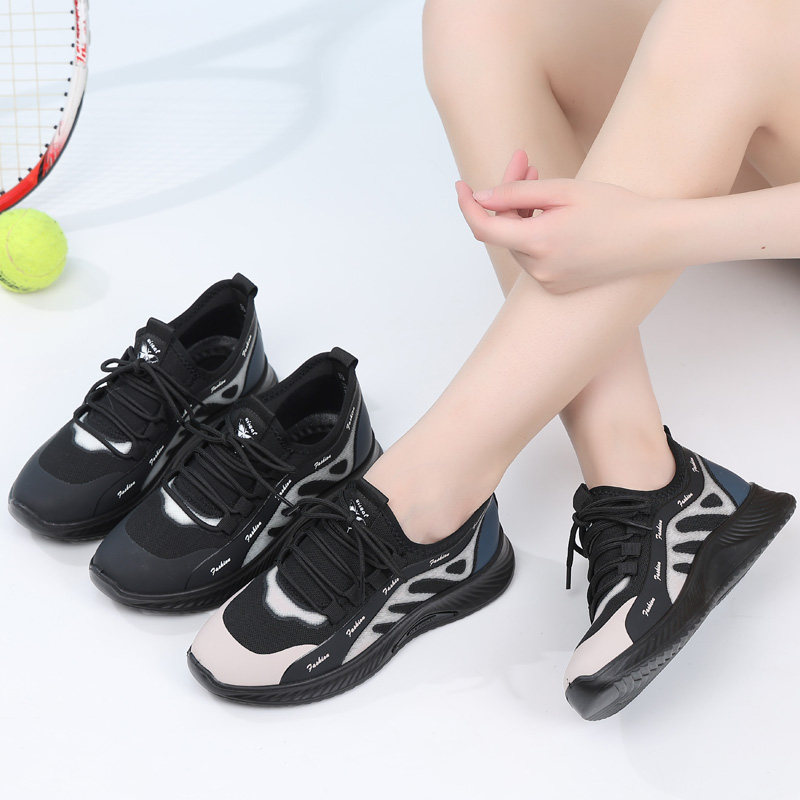 休闲运动鞋女鞋中年妈妈鞋春秋新款单鞋透气软底防滑轻便黑色旅游