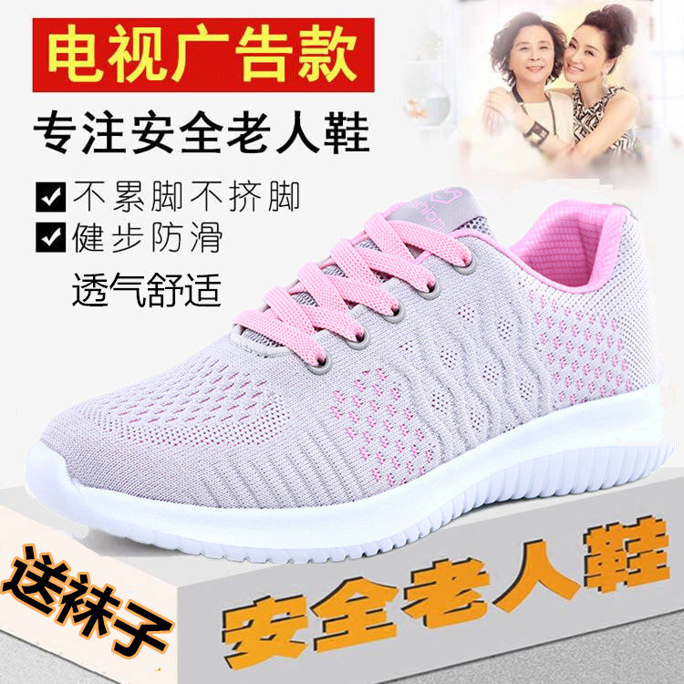 飞织健步鞋女软底防滑妈妈网面鞋大码女鞋中年休闲运动旅游鞋清仓