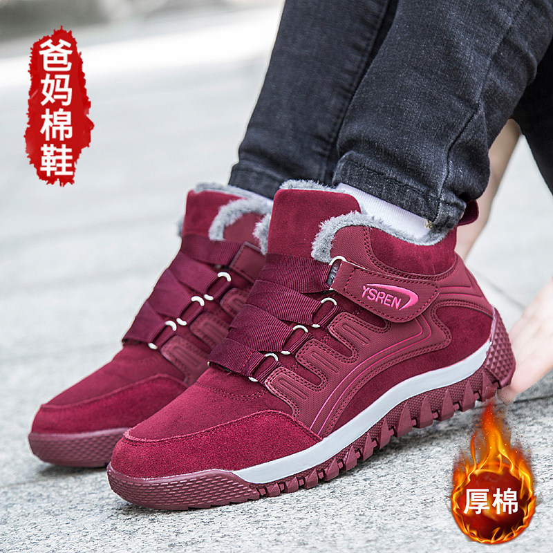 冬季加绒中年妈妈运动棉鞋加厚防滑旅游鞋轻便软底中老年跑步鞋女