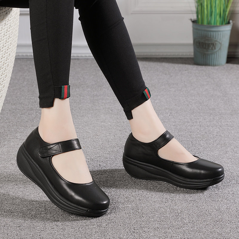 坡跟真皮女鞋镂空透气单鞋女2026春秋新款软底旅游休闲鞋中年皮鞋