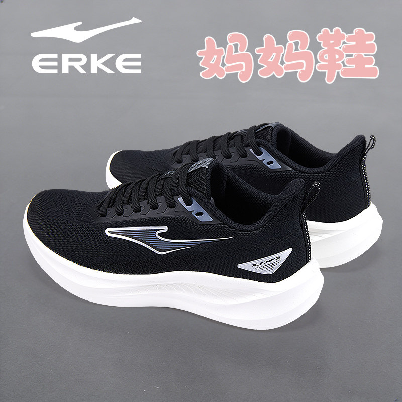 羽翼鸿星尔克女鞋2026新款网面透气黑色中年妈妈母亲软底旅游跑鞋