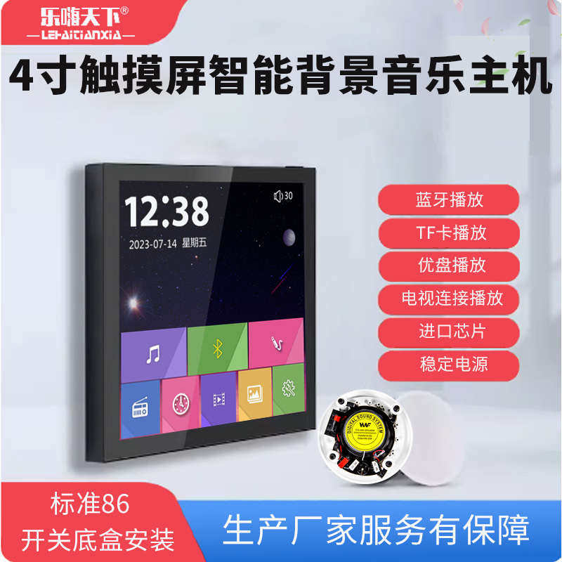 86智能家居4寸触控屏幕蓝牙背景音乐系统家庭酒店背景音乐主机功