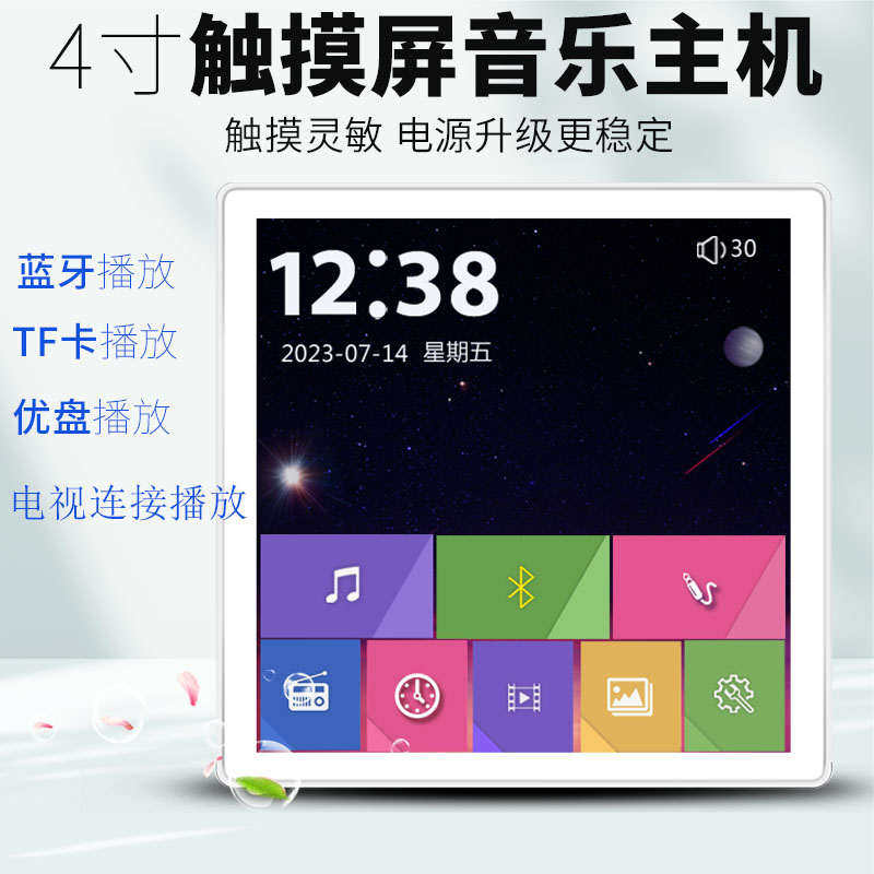 86智能家居4寸触摸屏蓝牙背景音乐系统家庭酒店背景音乐主机功放